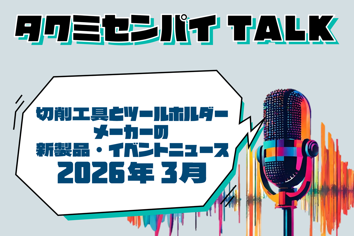 お知らせ タクミセンパイTALK「切削工具とツールホルダーメーカーの新製品・イベントニュース 2026年3月」公開 2026/04/08 2026/04/09 切削工具とツールホルダーメーカーの新製品とイベントニュースについて、公式サイトで2026年3月に公開された情報をまとめたタクミセンパイTALK(YouTube・Spotify・Apple Podcast)を公開しました。 <関連記事リンク> 【2026年3月】切削工具メーカーの新製品・イベント最新ニュースまとめ